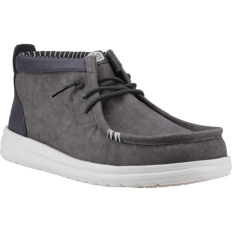 HEYDUDE Wally Mid GripR Katoenen Heren Zwarte Oester/Zwarte Enkellaarzen