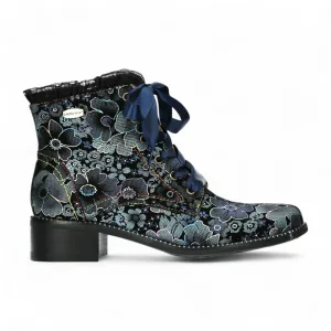 Laura Vita Emcmao-45 Blauwe bloemen dames gotische Victoriaanse leren enkellaarsjes met hak