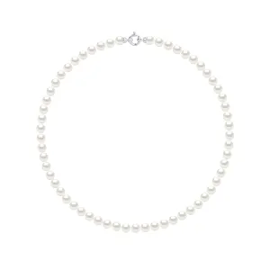 Rank ketting PRINCESS zoetwaterparels 6-7 mm ronde witte luxe witte gouden gesp