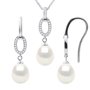 Normandië Versiering ketting en oorbellen Dangle Kralen Zoet Water White 925