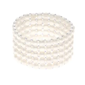 Manchet armband 5 Rijen Zoetwater Pearl White 925
