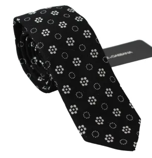 Dolce & Gabbana Mannen Zwart 100% Zijde Bloemen Print Klassieke Stropdas