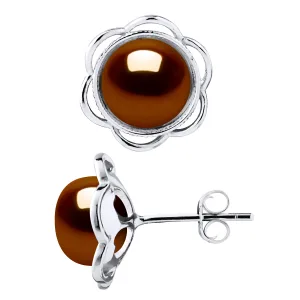 Stud Oorbellen FLOWER Beads Freshwater 89mm Knopen van de Chocolade 925
