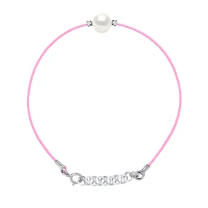 Diamond Bracelet 0060 Cts Natuurlijke en gekweekte parel Ronde 8-9 mm Nylon Rose 925