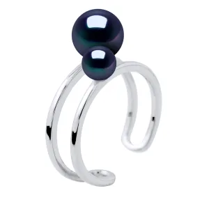 Ring DUO zoetwater parels 5 en 8 mm Black 925