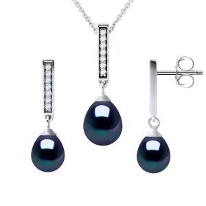 Finery Montaigne ketting en oorbellen Dangle Black Pearl Zoetwater 925