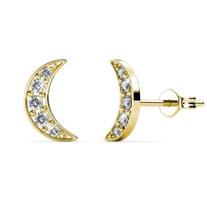 Halve maan oorbellen – goud en kristal