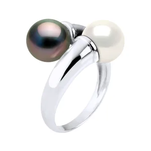 Ring U & Ik Prestige van Zilver 925 Geverfd met Rhodium, versierd met Echte Gecultiveerde Tahitiaanse Parel en FRESHWATERKLEUR NATUURLIJK WIT – 8-9 mm