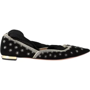 Aquazzura Bliss ballerina’s met enkelbandje en strik in zwart suède