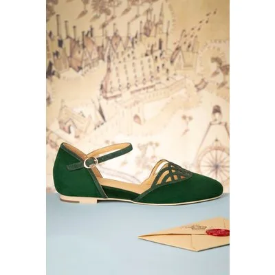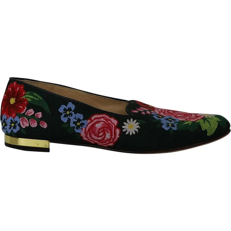 Charlotte Olympia Rozenhof Bloemig Geborduurde Instappers in Groene Stof