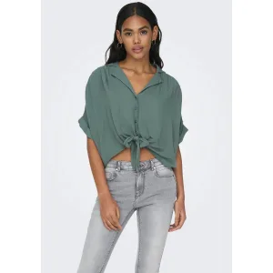 Only Blouse met korte mouwen ONLPAULA LIFE S/S TIE SHIRT WVN NOOS