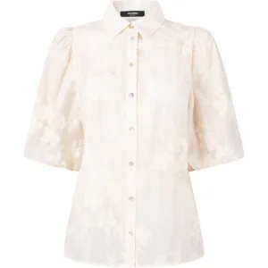 Geisha blouse flowers 53755-20 0 wool white/bla