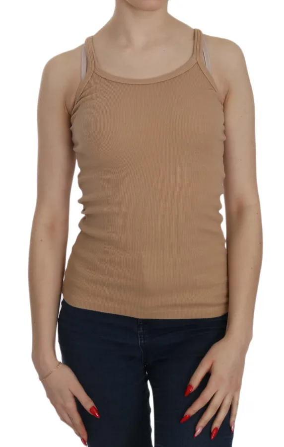 PINK MEMORIES Beigekleurige Mouwloze Spaghetti Strap Tanktop Blouse