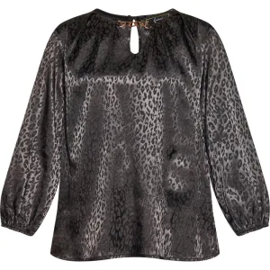 Blouse met korte mouwen Relaxed fit Black Delicate Leaf