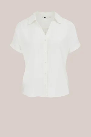 WE Fashion – Dames blouse met structuur – Curve – Regular fit – Wit – Livaeco™ Viscose – Plus Size
