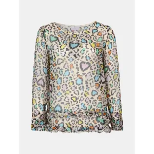 Mucho Gusto Blouse torre di palme beige met multicolor luipaardprint