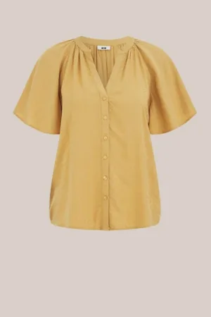 WE Fashion – Dames blouse met print – Regular fit – Okergeel – Viscose –