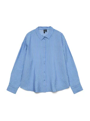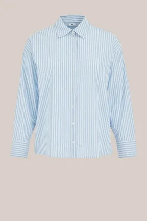 WE Fashion – Dames gestreepte blouse – Curve – Oversized – Lichtblauw – Plus Size
