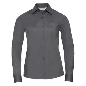 Russell Collection Dames/Dames Poplin Easy-Care Formeel Overhemd Met Lange Mouwen (Konvooi Grijs)
