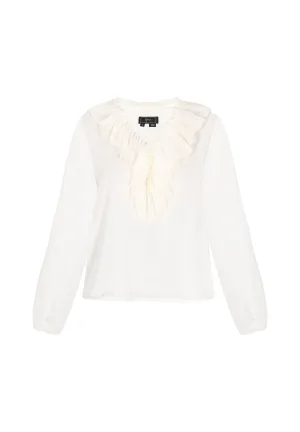 Dsquared2 Vrouwen Off White Silk Lange Mouwen Collared Blouse Top