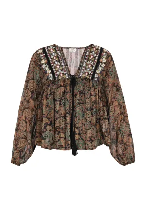 faina Blouse zwart / parelwit