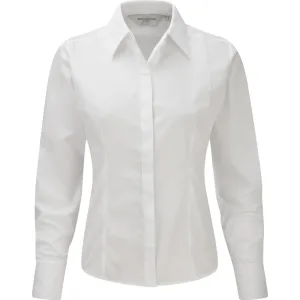 Russell Collectie Dames/Dames Lange Mouwen Poly-Katoen Gemakkelijk Onderhoud Gepaste Poplin Shirt (Wit)