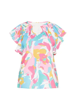 FELIPA Blouse ‘Fashion Look’ lichtblauw / goudgeel / mintgroen / rosa