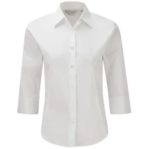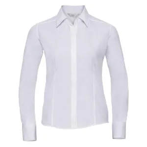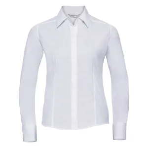 Russell Collection Dames/Dames Poplin Easy-Care Getailleerd overhemd met lange mouwen (Wit)