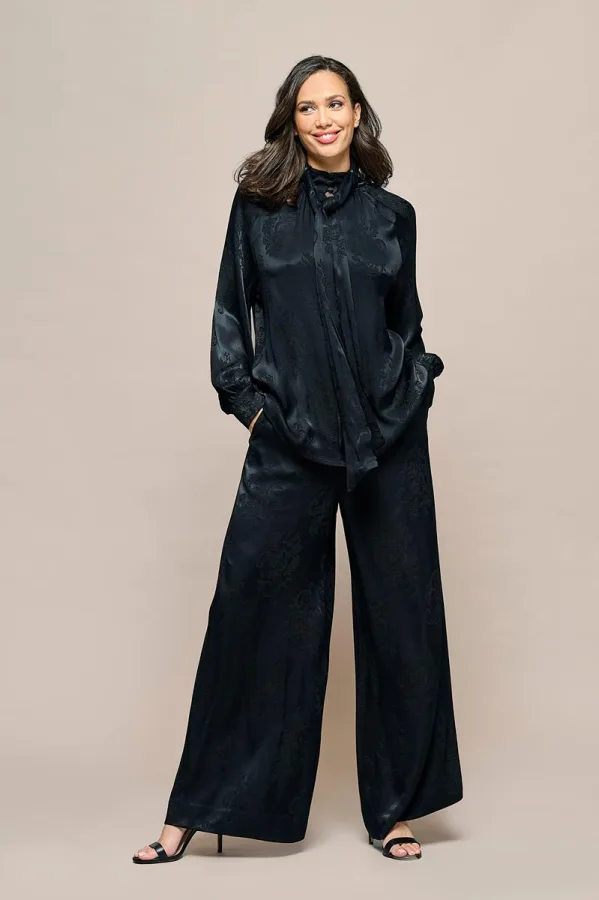 Tulpen mouwen blouse met monochrome bloemenprint en contrasterende halslijn