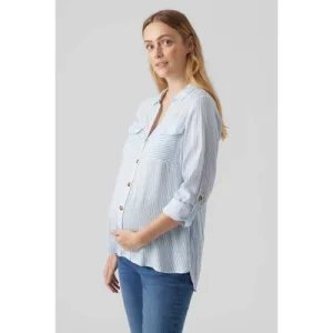 VERO MODA MATERNITY gestreepte zwangerschapsblouse VMMBUMPY lichtblauw