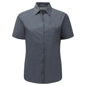 Russell Collectie Dames/Dames Korte Mouwen Poly-Katoen Easy Care Poplin Shirt (Konvooi Grijs)