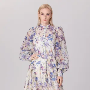 Organza overhemd met bloemenprint en lange mouwen