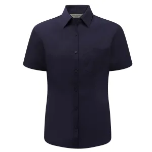Russell Collection Dames/Dames Poplin Easy-Care Formeel Overhemd met Korte Mouwen (Franse marine)