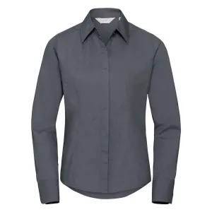 Russell Collection Dames/Dames Poplin met Lange Mouwen Formeel Overhemd (Konvooi Grijs)