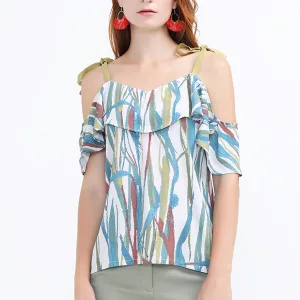 Top met tropische print en ruches op de schouders
