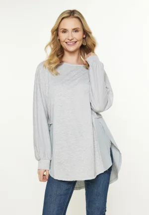 WE Fashion – Dames blouse met structuur – Regular fit – Lichtblauw –
