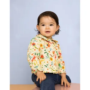 Mucho Gusto Zijden blouse blouse livorno beige met slangenprint en kleurrijke broches