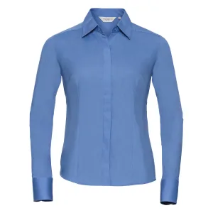 Russell Collectie Dames/Dames Lange Mouwen Poly-Katoen Gemakkelijk Onderhoud Gepaste Poplin Shirt (Bedrijfsblauw)
