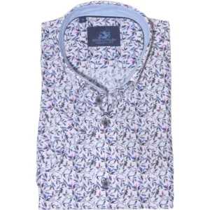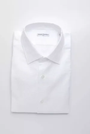 Russell Collection Heren overhemd met lange mouwen in visgraatmotief (Wit)