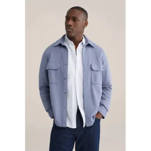 WE Fashion – Heren regular fit gebreid overhemd met structuur – Regular fit – Pastelblauw – Katoen –