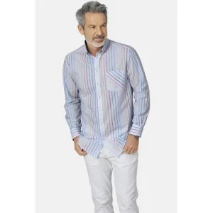 Van Gils – Heren regular fit over shirt met structuur van linnenmix – Regular fit – Donkerblauw – Linnen –