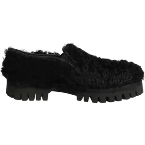 Dolce & Gabbana Jurk Zwarte Bont Leren Slippers Heren Schoenen
