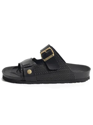 Laura Vita Dames Brcyano 32 Zwarte Leren Sandalen met Bloemenprint en Bandjes