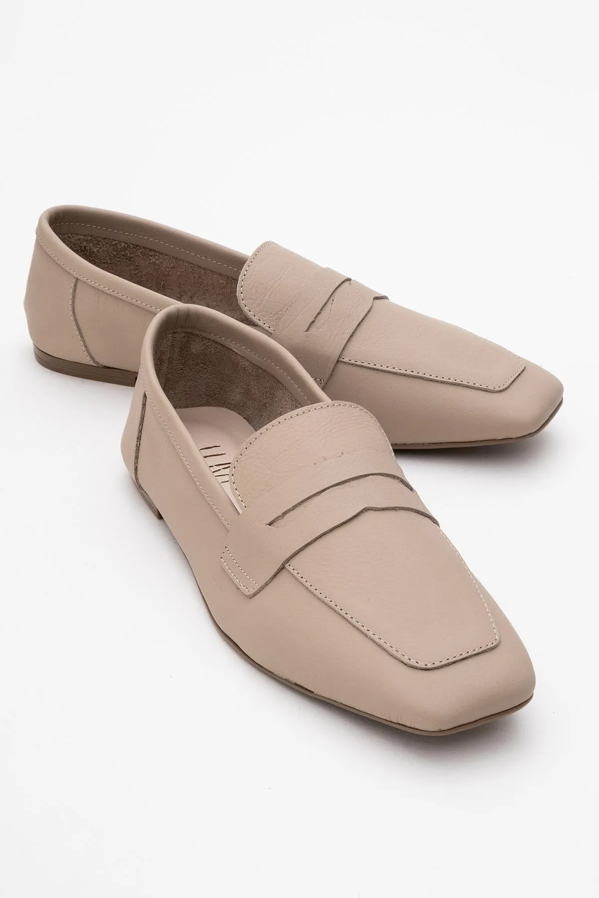 Manfield – Dames – Beige suède loafers met gouden studs –