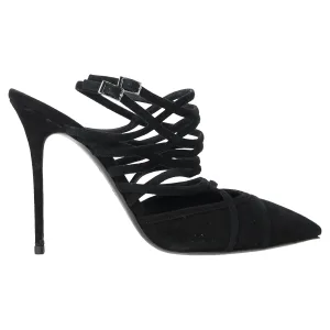 Giuseppe Zanotti pumps met vetersluiting en bandjes in zwart suède.
