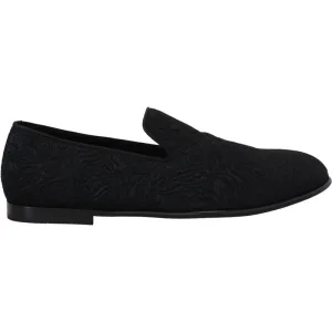 Dolce & Gabbana Zwarte Bloemen Jacquard Slippers Instappers Schoenen