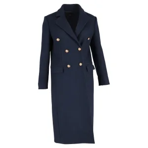 Sandro Paris mouwloze double-breasted jas van marineblauwe wol.