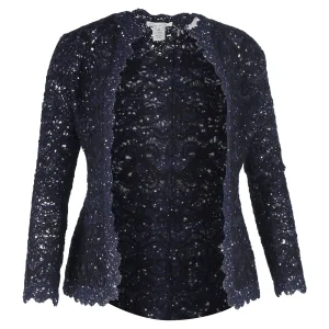 Oscar de la Renta Geborduurde Paillettenjack in Navy Blauw Katoen