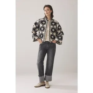 Summum Woman Short Round Neck Jacket Geo Aztek Black