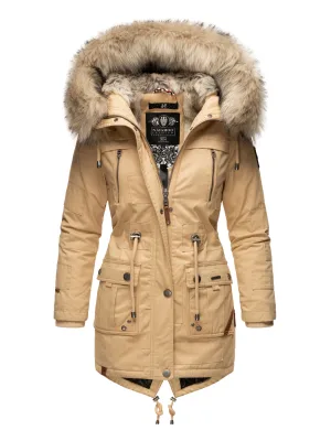 Marikoo dames winterjas met capuchon & imitatiebont voering